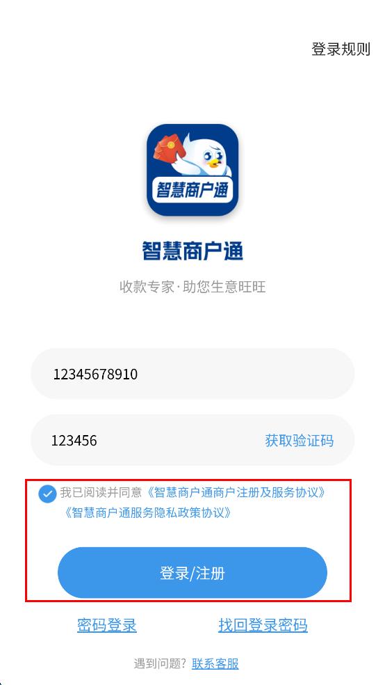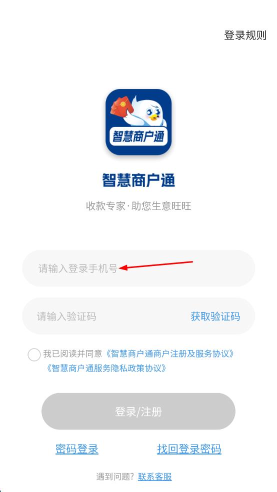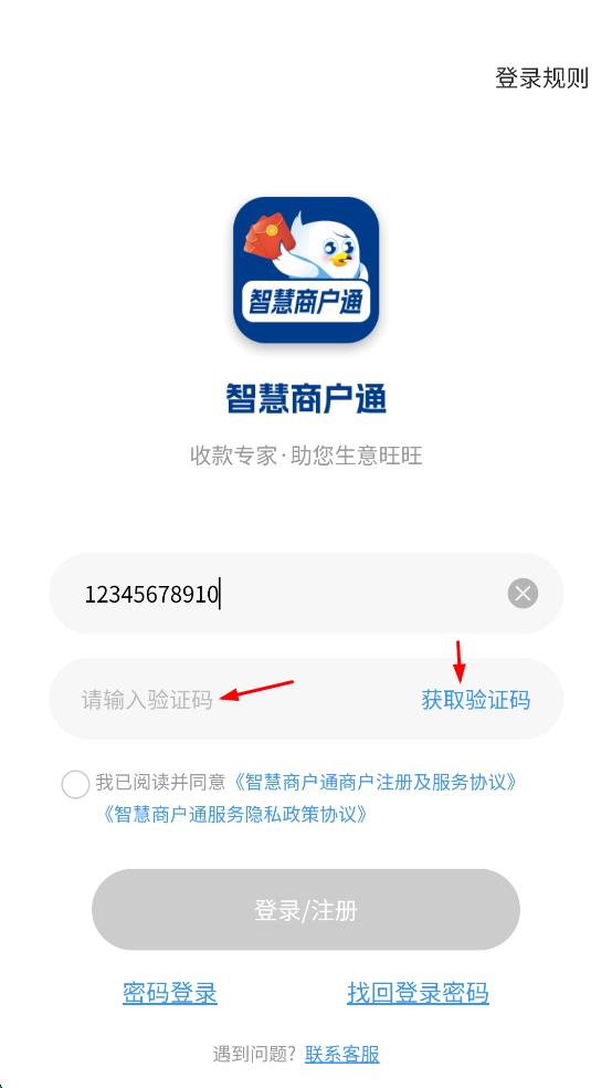 1、打開智慧商戶通,點擊“驗證碼登錄”,進入驗證碼登錄頁面。