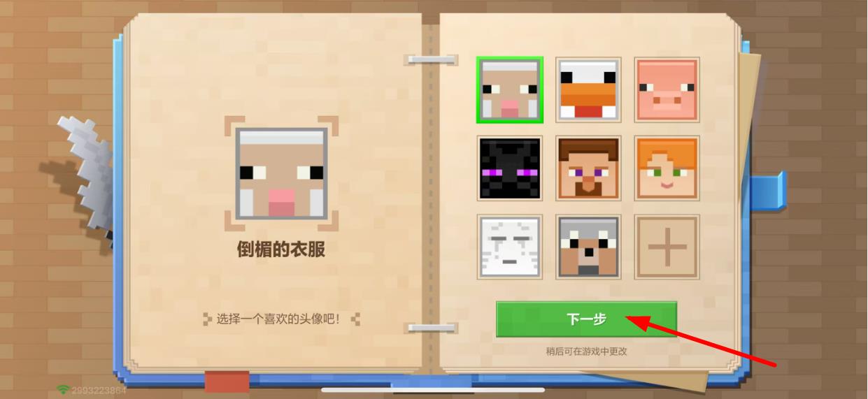 1、進入我的世界角色設(shè)置界面,在右側(cè)頭像列表中挑選自己喜歡的頭像,選好后點擊右下方下一步按鈕。