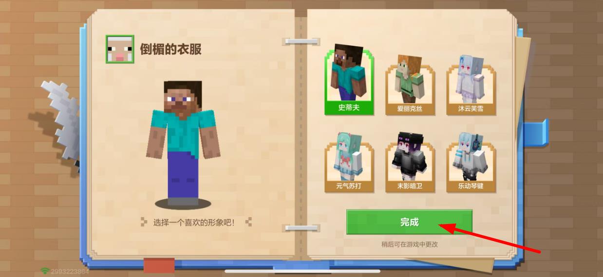 2、接著在形象選擇頁面,從史蒂夫、愛麗克絲等多個角色形象里,選擇心儀的角色形象,隨后點擊右下方完成按鈕。