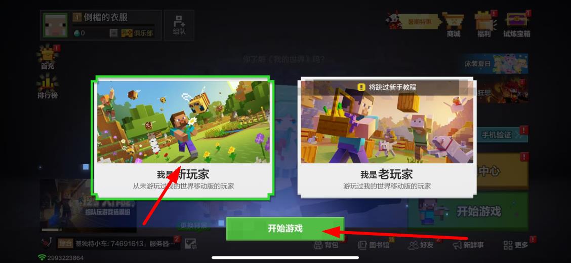 3、來到游戲初始界面,點擊左側(cè)我是新玩家選項框,再點擊下方開始游戲按鈕,跟隨新手教程熟悉游戲操作和玩法。