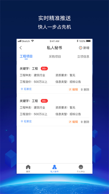 訂閱專(zhuān)屬招標(biāo)信息,分類(lèi)詳細(xì),精準(zhǔn)訂閱,無(wú)需查找搜索,獲取信息快人一步,還可以自定義設(shè)置推送時(shí)間、推送方式,只要符合條件的信息更新,第一時(shí)間推送,隨時(shí)掌握第一手信息。