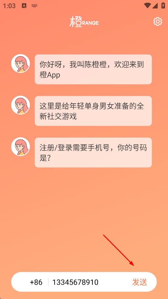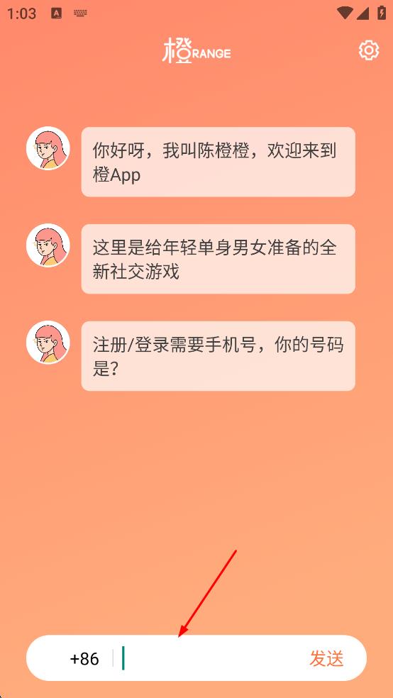 2、進(jìn)入與陳橙橙的聊天界面,在頁面下方的輸入框中,填寫自己的手機(jī)號(hào)碼。
