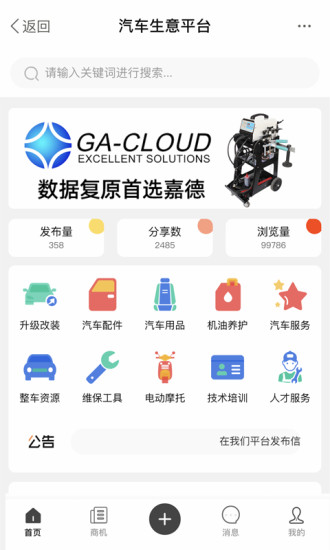 生意平臺:建立汽車行業(yè)商圈,發(fā)布產(chǎn)品信息,技術(shù)培訓,人才招聘等信息,建立聯(lián)系,促進成交。