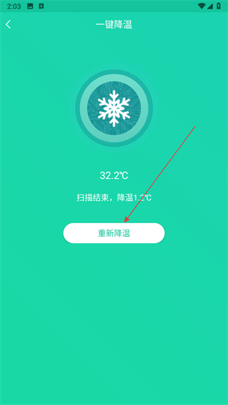 4、觀看完后,APP自動對手機溫度進行掃描并執(zhí)行降溫操作,點擊重新降溫按鈕即可再次降溫。