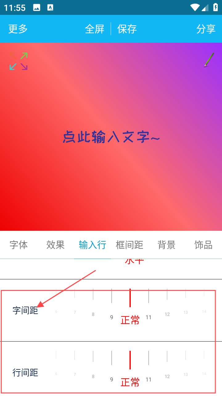 2、在下方功能欄點(diǎn)擊框間距,通過(guò)滑動(dòng)對(duì)應(yīng)的滑動(dòng)條,就能對(duì)字間距和行間距進(jìn)行調(diào)整,讓文字排列更符合需求。