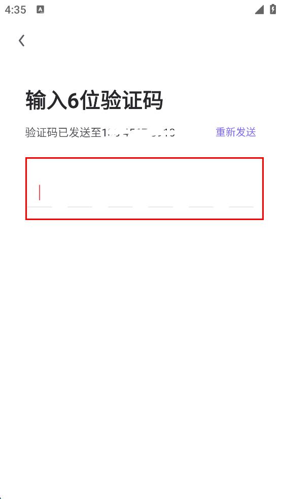 4、收到驗證碼后,在“輸入6位驗證碼”頁面,輸入驗證碼,完成手機號登錄流程。