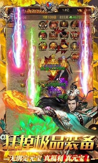 3、首充豪禮:充值任意金額即可領(lǐng)取高達(dá)10倍元寶返利,更有傳世裝備,限定時裝,80級直升丹