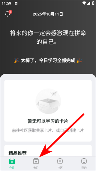 1、在滑記的主界面,需要點擊底部卡片按鈕,進入卡片盒頁面。