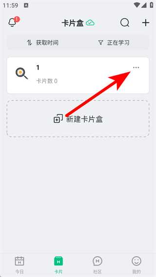 2、在卡片盒的頁面,點擊卡片盒右側(cè)的…按鈕,彈出操作菜單。