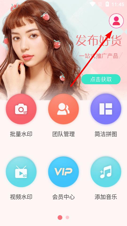 1、打開簡(jiǎn)單水印相機(jī)app,點(diǎn)擊界面右上角的人像圖標(biāo),進(jìn)入個(gè)人中心。