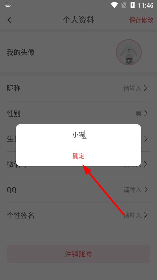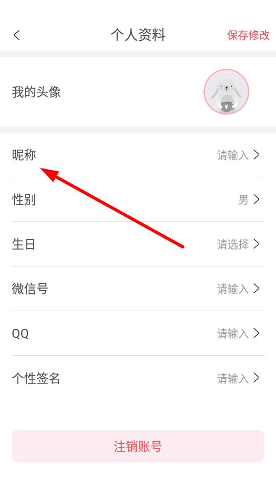 3、在個(gè)人資料頁(yè)面里,找到昵稱選項(xiàng)并點(diǎn)擊,進(jìn)入填寫昵稱頁(yè)面。