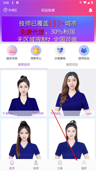 1、打開(kāi)閑選按摩APP,點(diǎn)擊導(dǎo)航欄中的我的。