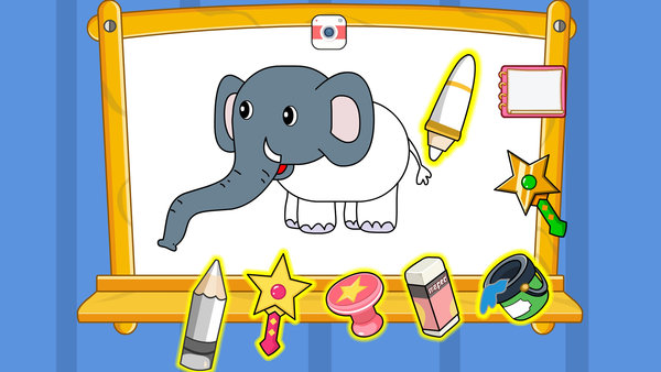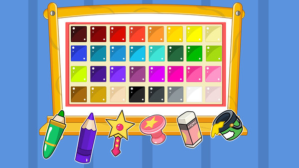 3.多種筆刷工具包括鉛筆、蠟筆,其他工具有自動(dòng)填色魔法棒、印章、橡皮擦、油漆桶和動(dòng)畫(huà)魔法棒,給圖形上色后點(diǎn)擊動(dòng)畫(huà)魔法棒可以播放作品。