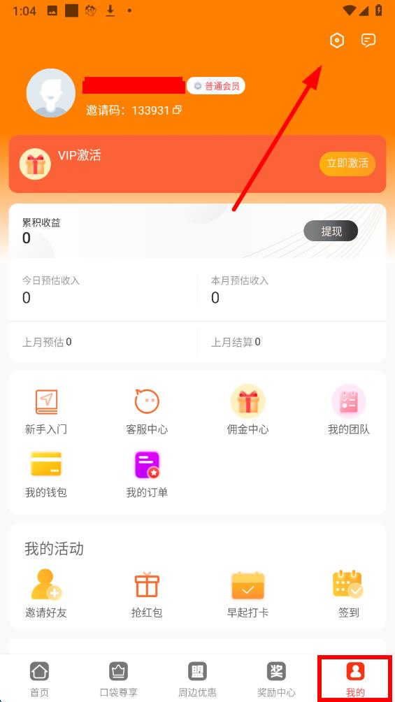 1、打開小口袋app,點(diǎn)擊底部我的選項(xiàng),在右上角點(diǎn)擊設(shè)置圖標(biāo),進(jìn)入設(shè)置界面。
