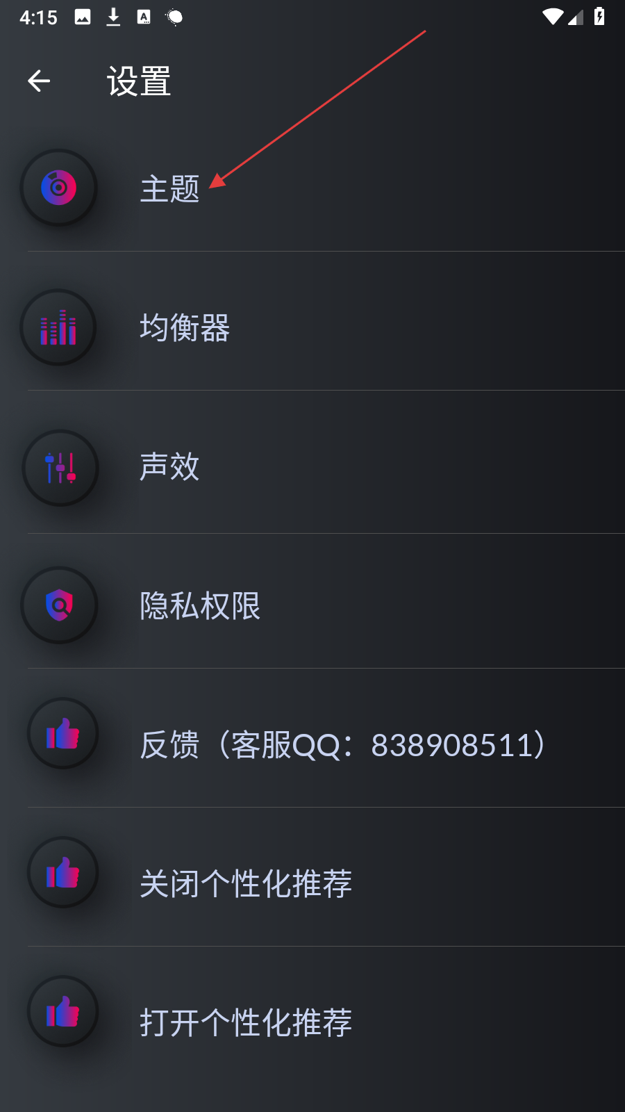 2、在設(shè)置頁(yè)面中找到主題選項(xiàng),點(diǎn)擊進(jìn)入主題選擇界面。