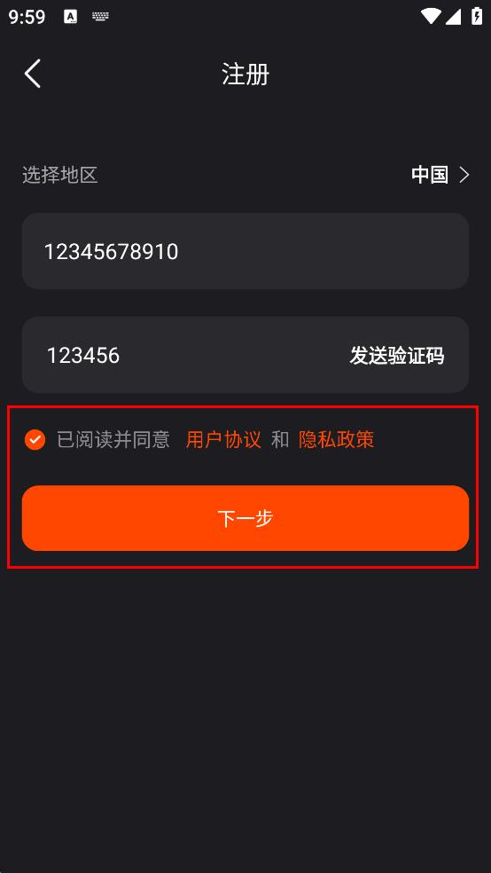 4、勾選已閱讀并同意用戶協(xié)議和隱私政策,點擊下一步完成注冊。