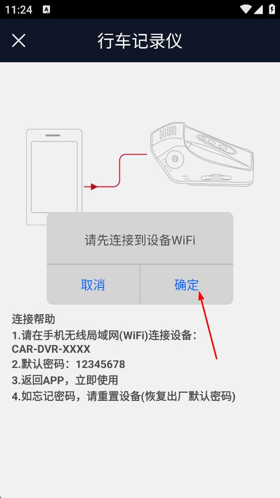 3、在彈出的“請(qǐng)先連接到設(shè)備WiFi”提示框中,點(diǎn)擊“確定”按鈕。
