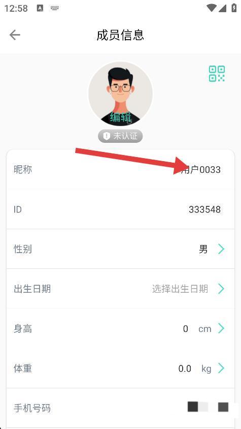 3、在信息頁面,點擊昵稱右側(cè)的文字區(qū)域,進(jìn)行昵稱修改。