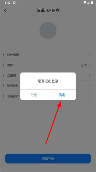 3、在編輯用戶信息頁面,點擊下方退出登錄的選項。