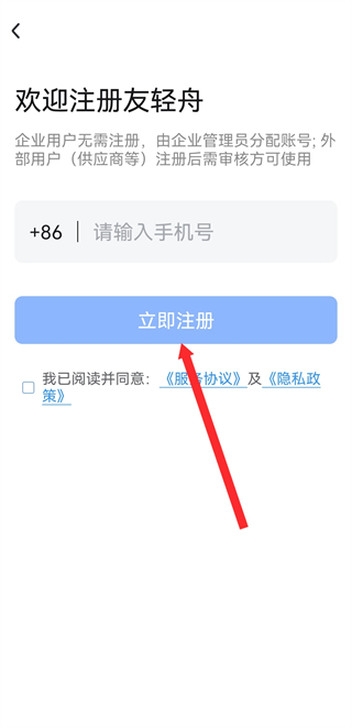 2、進(jìn)入注冊頁面,輸入手機(jī)號后,點(diǎn)擊立即注冊。