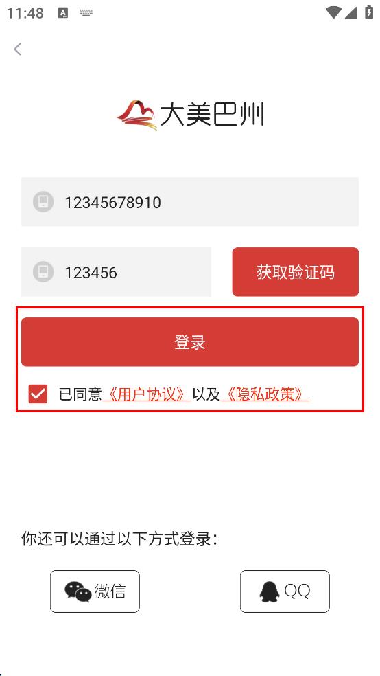4、勾選“已同意用戶協(xié)議以及隱私政策”,然后點擊“登錄”按鈕。