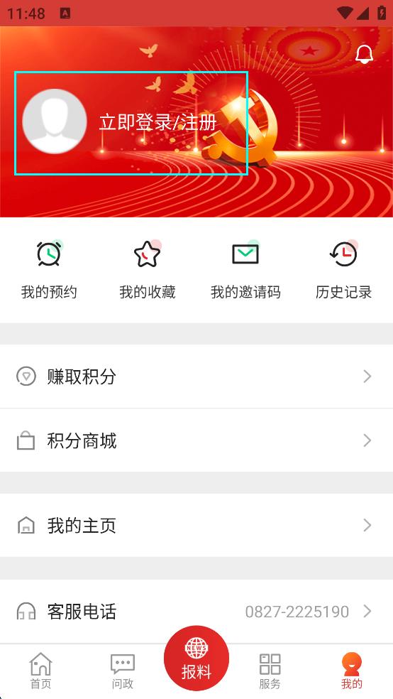 2、在“我的”頁面,點擊“立即登錄/注冊”按鈕,進(jìn)入登錄頁面。