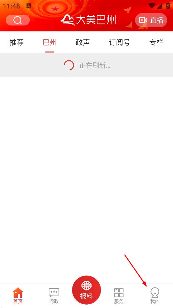 1、打開大美巴州APP,進(jìn)入首頁后,點擊頁面右下角的“我的”按鈕。