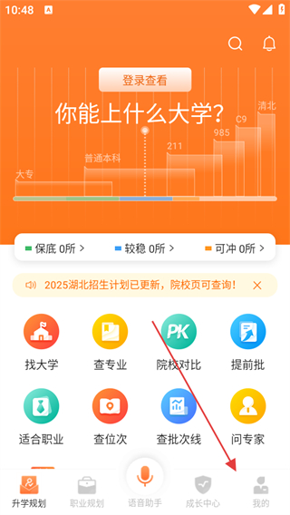 1、打開完美志愿APP,點擊底部導航欄最右側的我的選項。