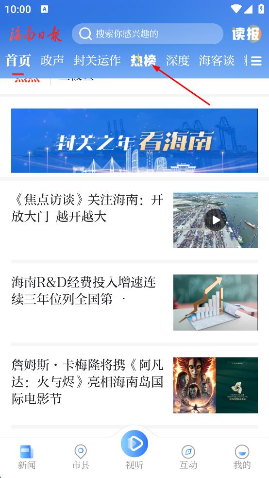 2、在APP主界面上方,找到“熱榜”選項并點擊,進入熱榜排行頁面。