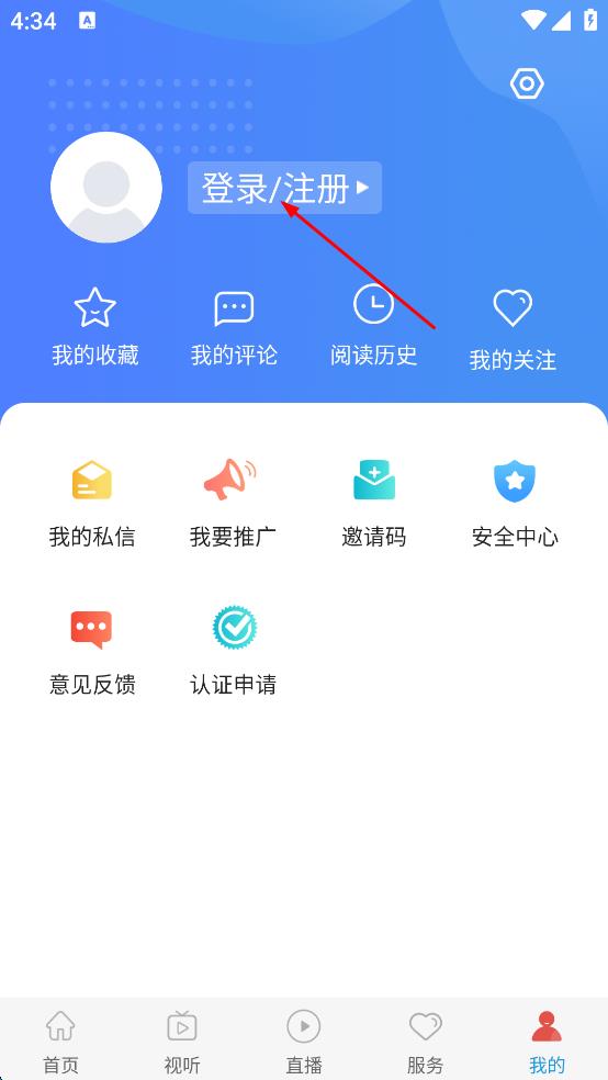 3、在個(gè)人頁(yè)面點(diǎn)擊“登錄/注冊(cè)”,進(jìn)入登錄界面。
