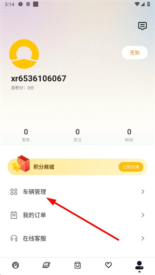 2、在我的頁面里,找到并點(diǎn)擊車輛管理選項(xiàng),進(jìn)入車輛管理界面。