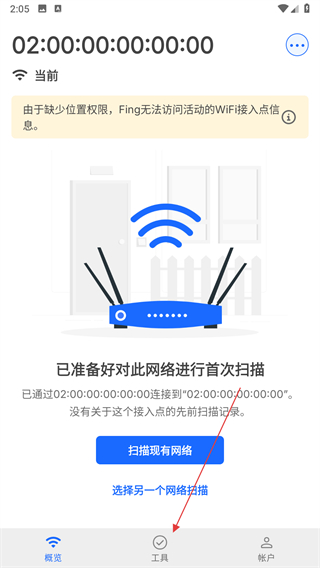 1、打開(kāi)Fing APP,點(diǎn)擊工具選項(xiàng)。
