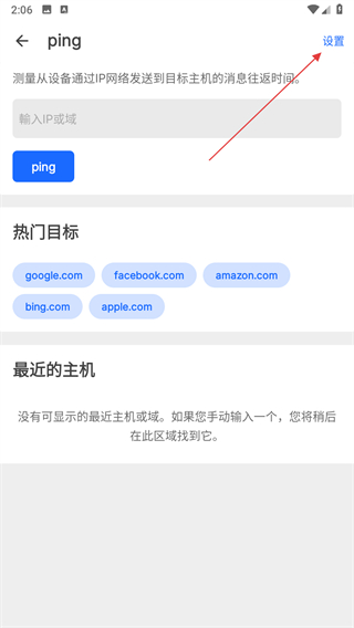 3、在ping頁(yè)面,點(diǎn)擊右上角設(shè)置。