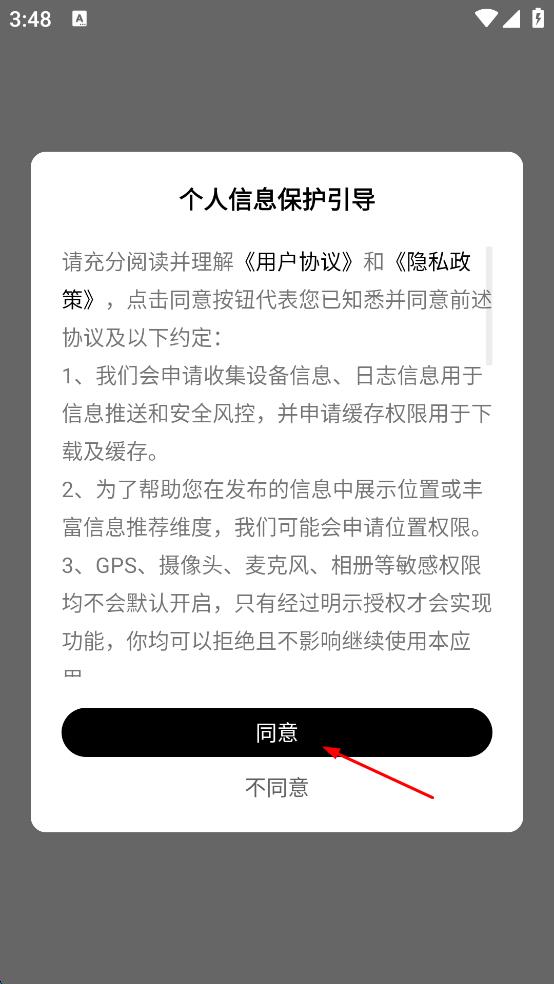 1、打開川關(guān)在線,出現(xiàn)個(gè)人信息保護(hù)引導(dǎo)提示框,點(diǎn)擊同意。