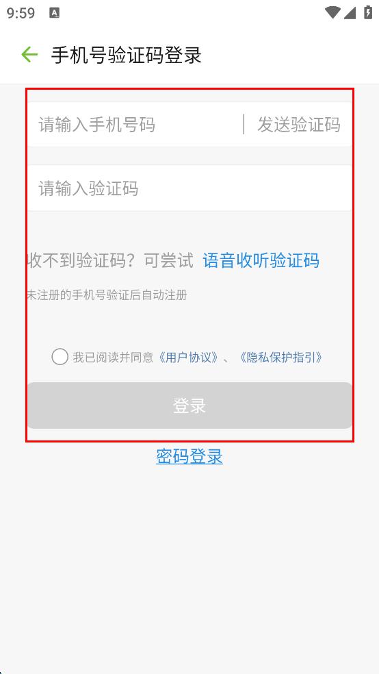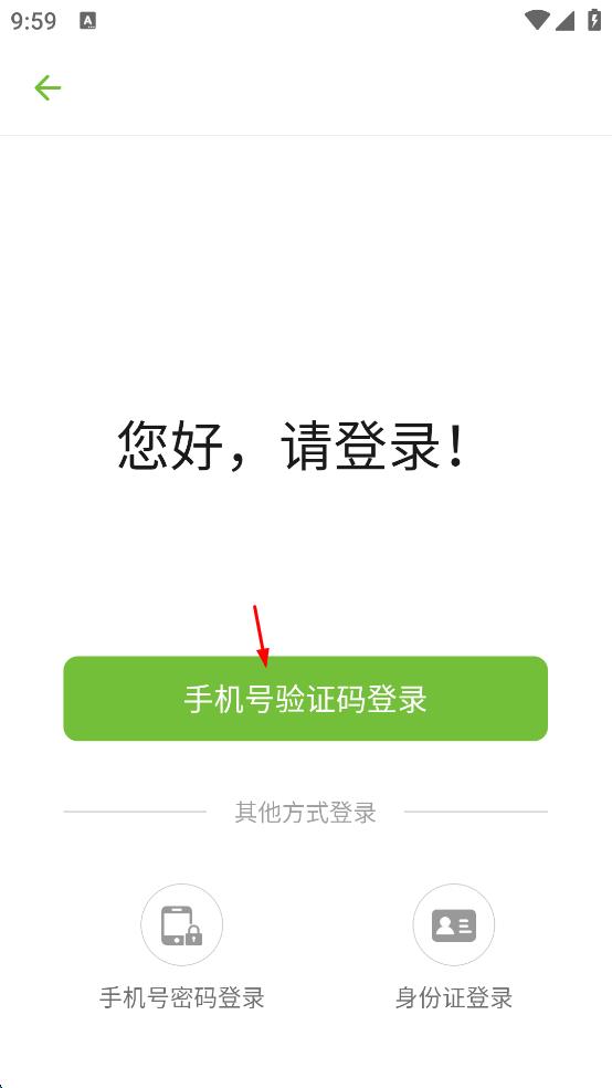 3、在登錄選擇頁(yè)面,點(diǎn)擊“手機(jī)號(hào)驗(yàn)證碼登錄”按鈕,進(jìn)入手機(jī)號(hào)驗(yàn)證碼登錄的具體界面。