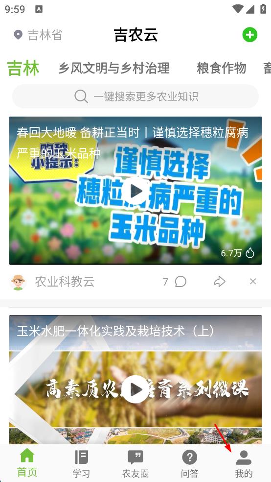 1、打開(kāi)吉農(nóng)云應(yīng)用,進(jìn)入首頁(yè)后,點(diǎn)擊頁(yè)面右下角的“我的”選項(xiàng),進(jìn)入個(gè)人相關(guān)界面。