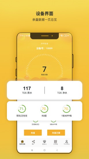 4.查看設備詳情,包含水質情況,設備使用剩余天數(shù),設備各級濾芯使用情況。