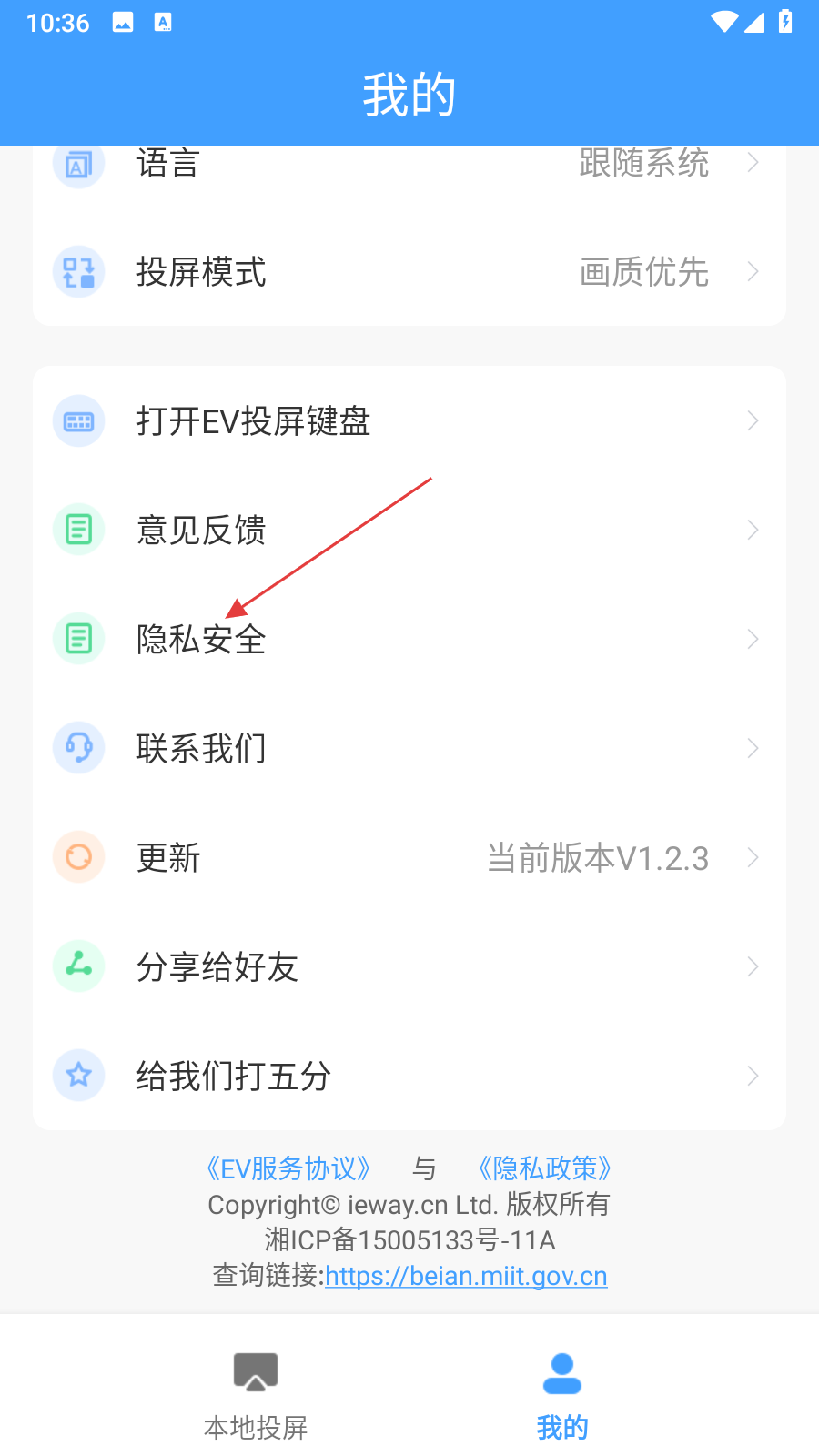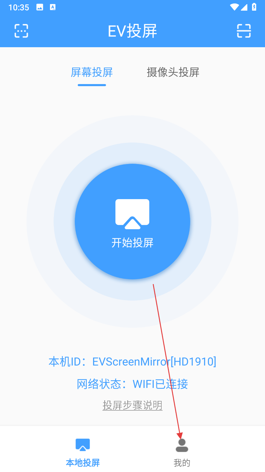 1、打開EV投屏應(yīng)用,點擊頁面底部我的選項,進入個人中心頁面。