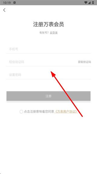 2、在登錄頁面點擊注冊,進入注冊萬表會員頁面。