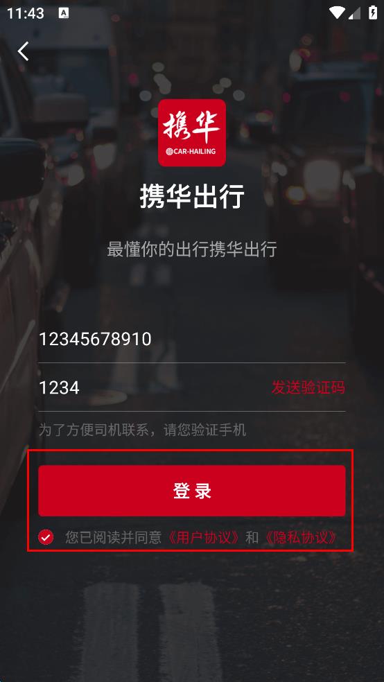 4、勾選已閱讀并同意相關(guān)協(xié)議,點擊登錄,即可完成攜華出行的登錄。