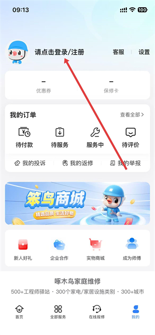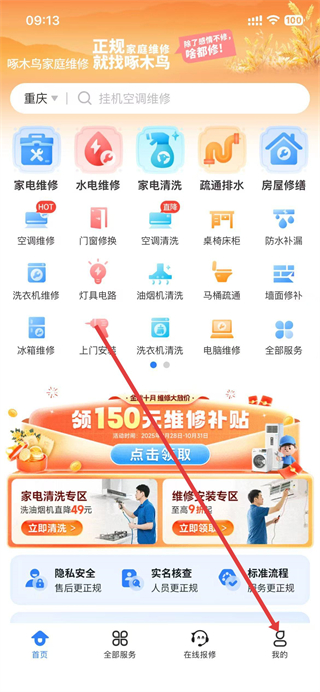 1、打開啄木鳥家庭維修,點(diǎn)擊底部導(dǎo)航欄我的選項(xiàng)。