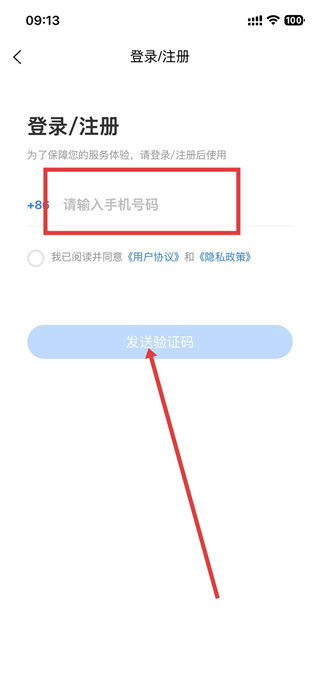 3、進(jìn)入登錄/注冊(cè)頁面后,填寫需要登錄的手機(jī)號(hào)。