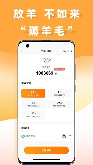 3、金幣的兌換比例不算太高,1000金幣可以兌換一毛錢,提款門檻為1元。