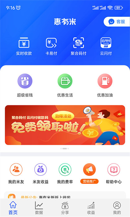 惠有米-是由深圳市自由付電子商務(wù)有限公司研發(fā)的一款集合了收款,辦卡,查詢等方便的生活功能的便利快捷的生活服務(wù)軟件,體驗(yàn)感強(qiáng),值得推薦