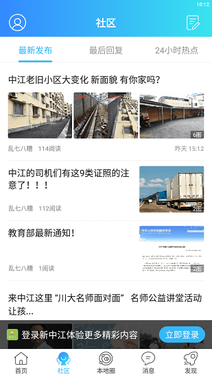 新中江,同城最新信息的聚集地。中江各地區(qū)市民每天在線更新各種生活、政務(wù)資訊,你關(guān)心的熱點(diǎn)新聞在app上都能看見;還有互動(dòng)社區(qū)為廣大中江人創(chuàng)造一個(gè)互動(dòng)平臺,吐槽、熱議、分享、交友,在這里統(tǒng)統(tǒng)都能實(shí)現(xiàn);還有本地圈帶你了解周邊信息,暢享最便捷的生活服務(wù)。