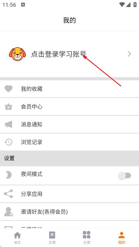 2、在“我的”頁面,點擊“點擊登錄學(xué)習(xí)賬號”按鈕,進入登錄賬號頁面。