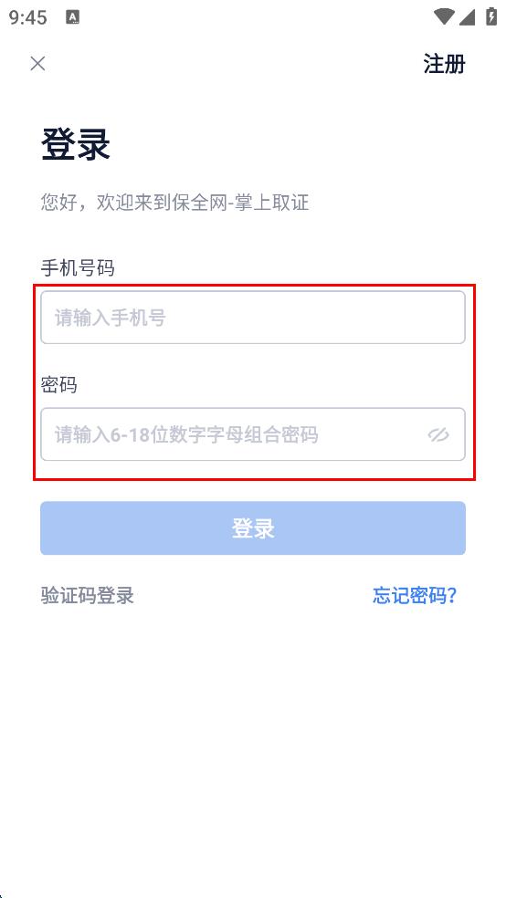 3、在登錄頁面輸入手機(jī)號(hào)碼,設(shè)置6 - 18位數(shù)字字母組合的密碼。