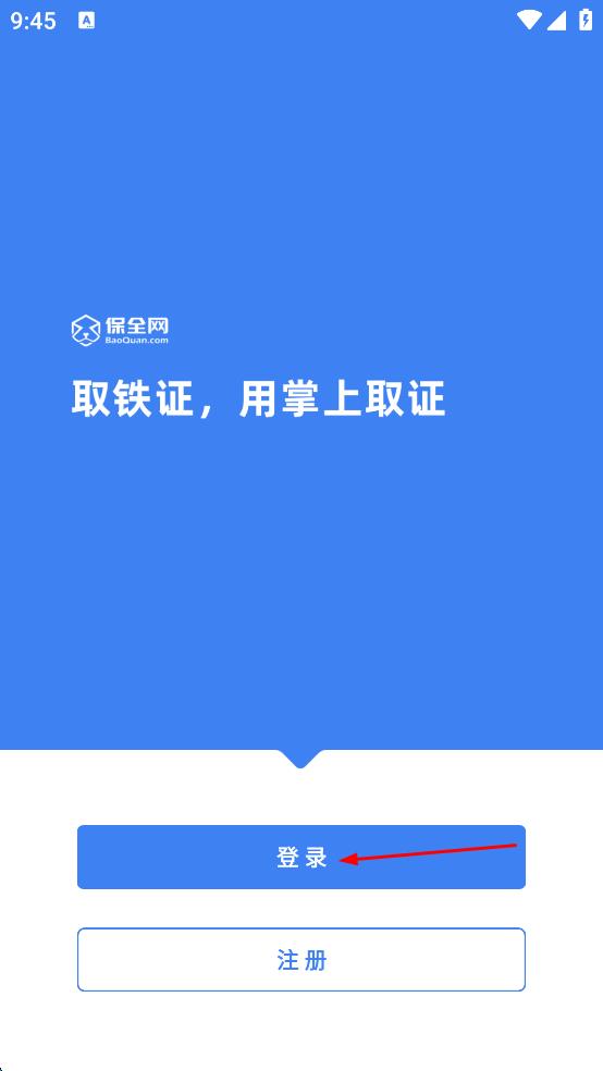 2、進(jìn)入新頁面,看到取鐵證,用掌上取證字樣,點(diǎn)擊下方登錄按鈕。
