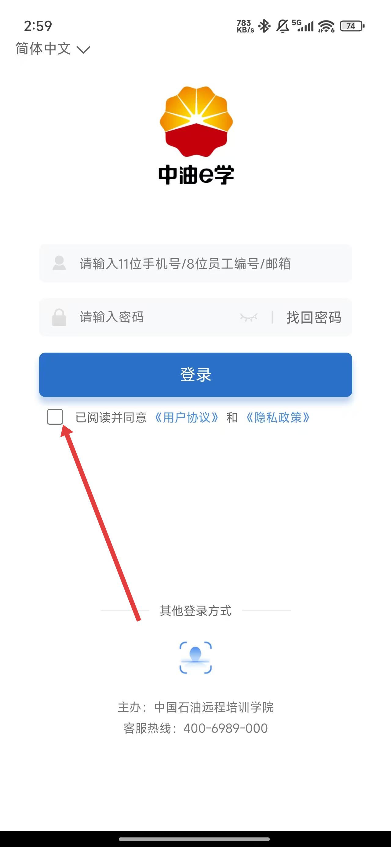 2、在進入到登錄頁面中,登錄前需先點擊勾選已閱讀并同意按鈕后操作。