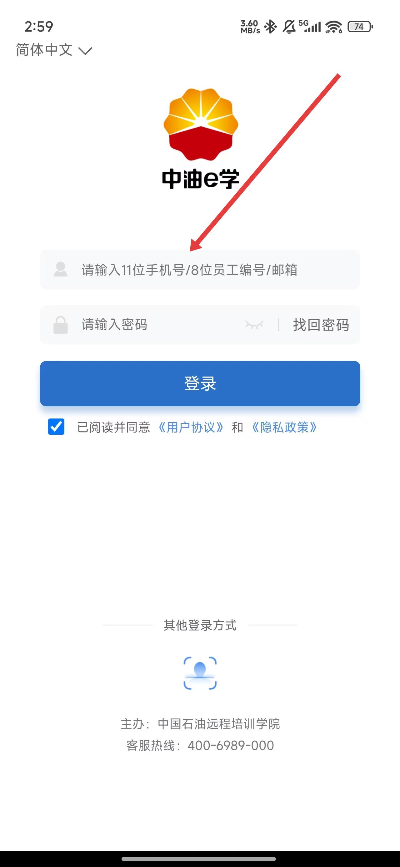中石油e學不需要注冊,員工直接輸入11位手機號碼/8位員工編號/郵箱和密碼就可以登錄使用了!